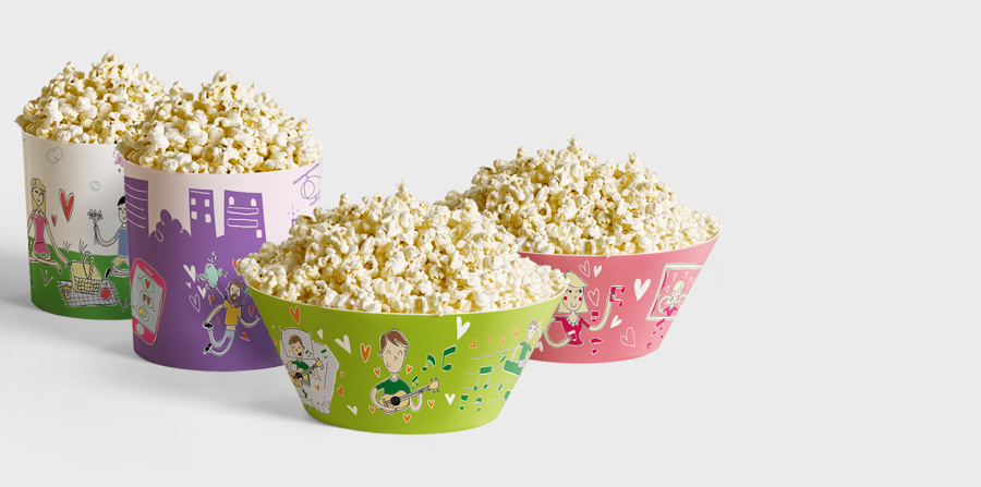 Patricia Reis, Flancisco Lelis e Bruno Ramos foram os parceiros na criação do brinde do dia dos Namorados do Shopping Cidade, em Belo Horizonte. Tendo como tema o encontro, os baldes de pipoca ilustram cenas de casais apaixonados em histórias que se cruzam.