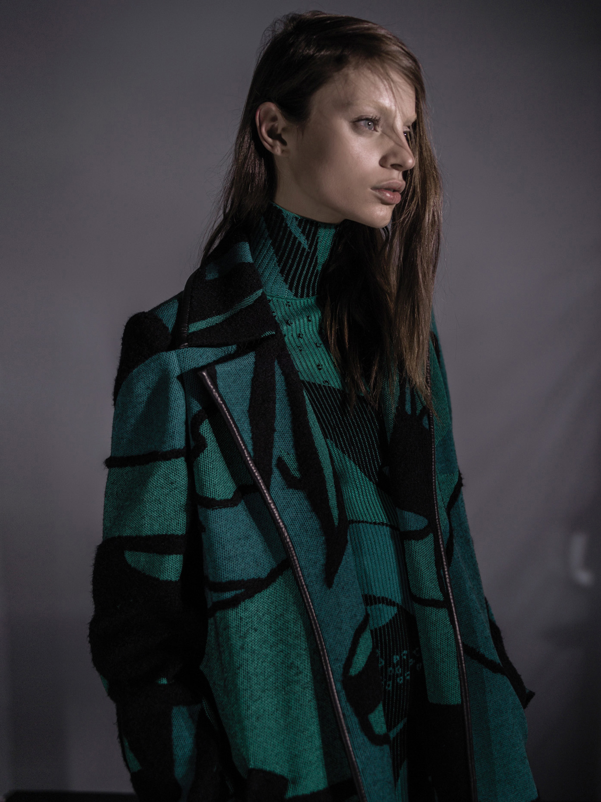 O delta dos rios é o mote do jacquard tramado em tons de terra e verde aplicado em vestidos e maxicasacos. As ilustrações foram feitas em parceria com Brener Guerra. As fotos são de Gustavo Marx.