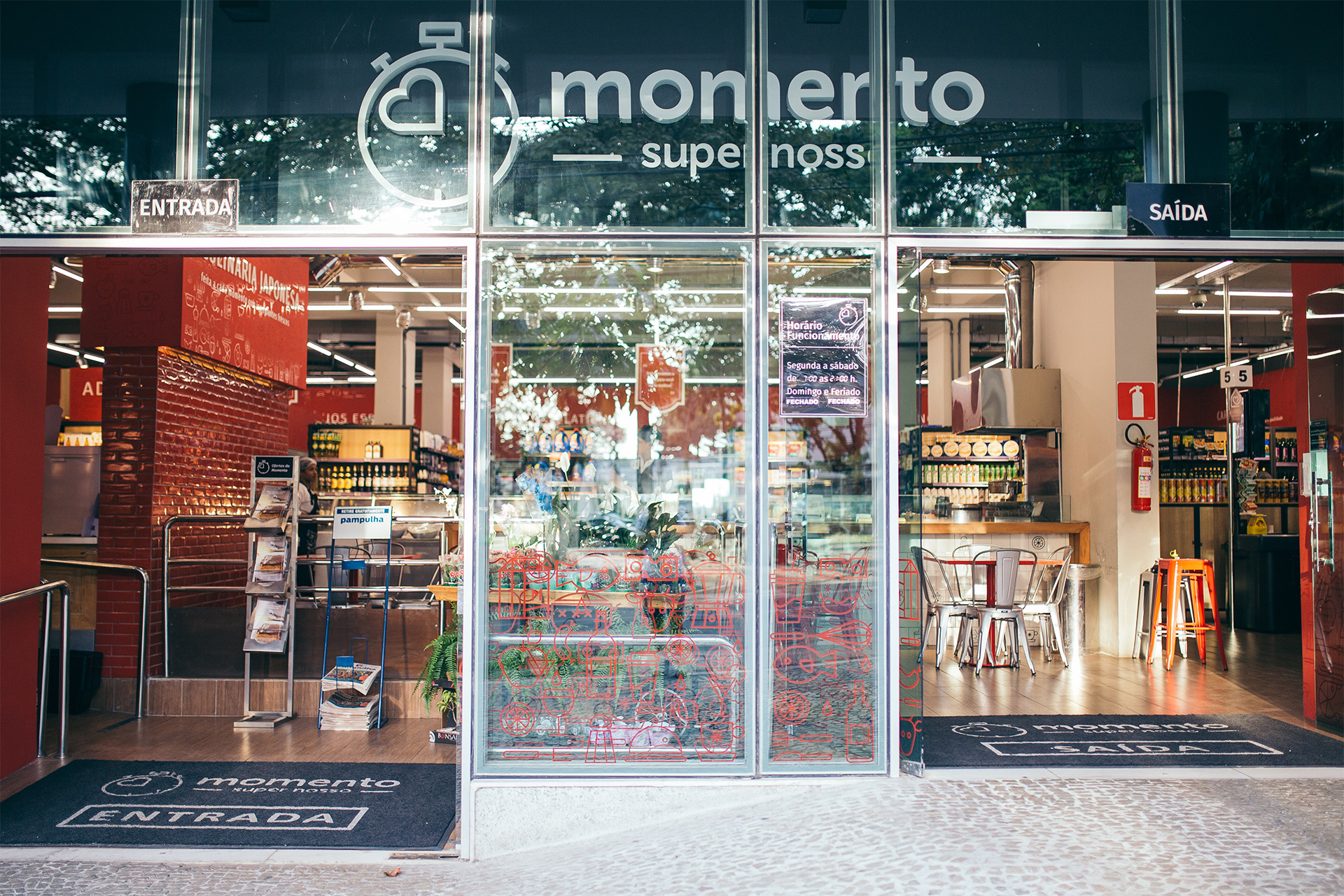 Proposição do conceito e estratégias de comunicação antecederam a criação do Sistema de Identidade Visual para o Momento, rede de mercados de bairro com curadoria de produtos deli, processados fresquinhos, japa e pães. Projeto amplo que inclui a criação de uniformes, tablóide semanal de ofertas e programação visual de 8 lojas, incluindo sinalização, iconografia e mobiliário para placas. Os textos e a Direção Criativa são de Dan Zecchinelli. Planejamento estratégico de Diego Rezende.